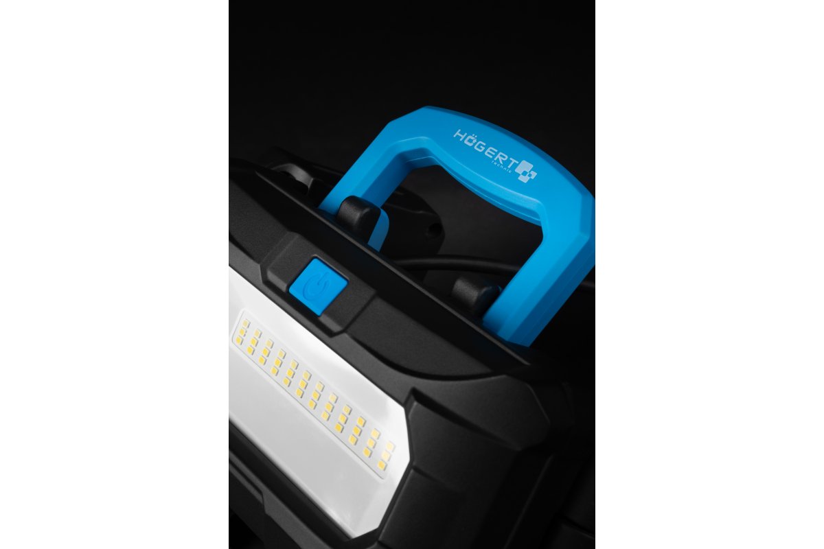 Прожектор, завдяки SMD-світлодіодам, дає змогу ефективно освітлювати робоче місце. Регульовані кронштейни дають змогу контролювати кут падіння світла, що підвищує комфорт роботи. Завдяки захисту від води і пилу (IP54) прожектор успішно працює скрізь, де потрібне точне освітлення об'єкта. Стійкість до ударів 5 Дж (IK08) і термостійкість гарантують освітлення в особливо складних умовах під час проведення ремонтних або будівельних робіт.