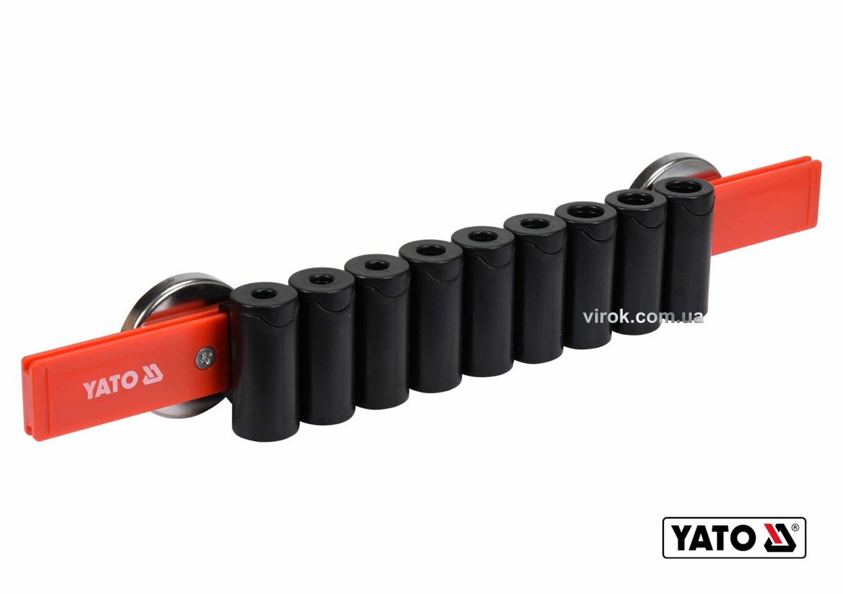 Рейка пластикова з магнітним кріпленням для 9 викруток YATO : 350 х 50 х 40 мм [6/24]