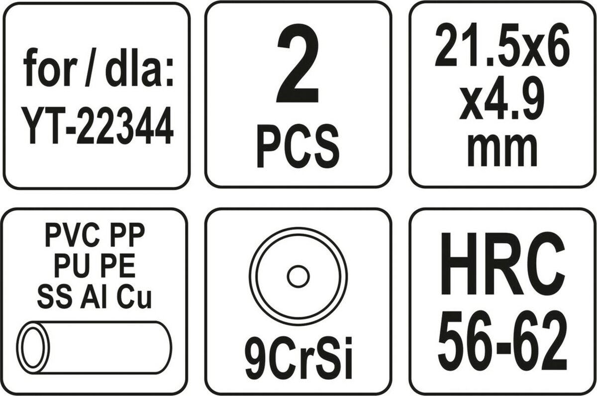 Опис товару ‐ Різці дискові YATO Ø= 21,5/ 6 мм, t= 4,9 мм до труборіза YT-22344, 2 шт(DW)