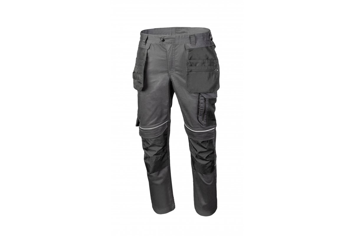 Професійні чоловічі захисні штани HASSO виготовлені з найякісніших матеріалів. Крім високої міцності, вони також забезпечують великий комфорт використання. Під час виробництва брюк особлива увага приділялася функціональності і безпеки одягу. Підвищена еластичність штанів WURNITZ робить їх придатними для багатьох видів робіт без обмеження рухів користувача, а додані світловідбиваючі деталі забезпечують безпечну роботу після настання темряви. Як кишені інструментів, так і коліна оснащені підсиленнями OXFORD, крім того, кишені легко від'єднуються, якщо вам не потрібно ними користуватися. Штани доступні в модному темно-сірому кольорі, з синіми вставками і широкою гамою розмірів (від S до 3XL). Вони були створені з думкою про професіоналів. Ідеально підходить для виробництва, будівництва, транспорту та автомеханіків. Вони відмінно підійдуть для обслуговування, складання і технічних робіт.