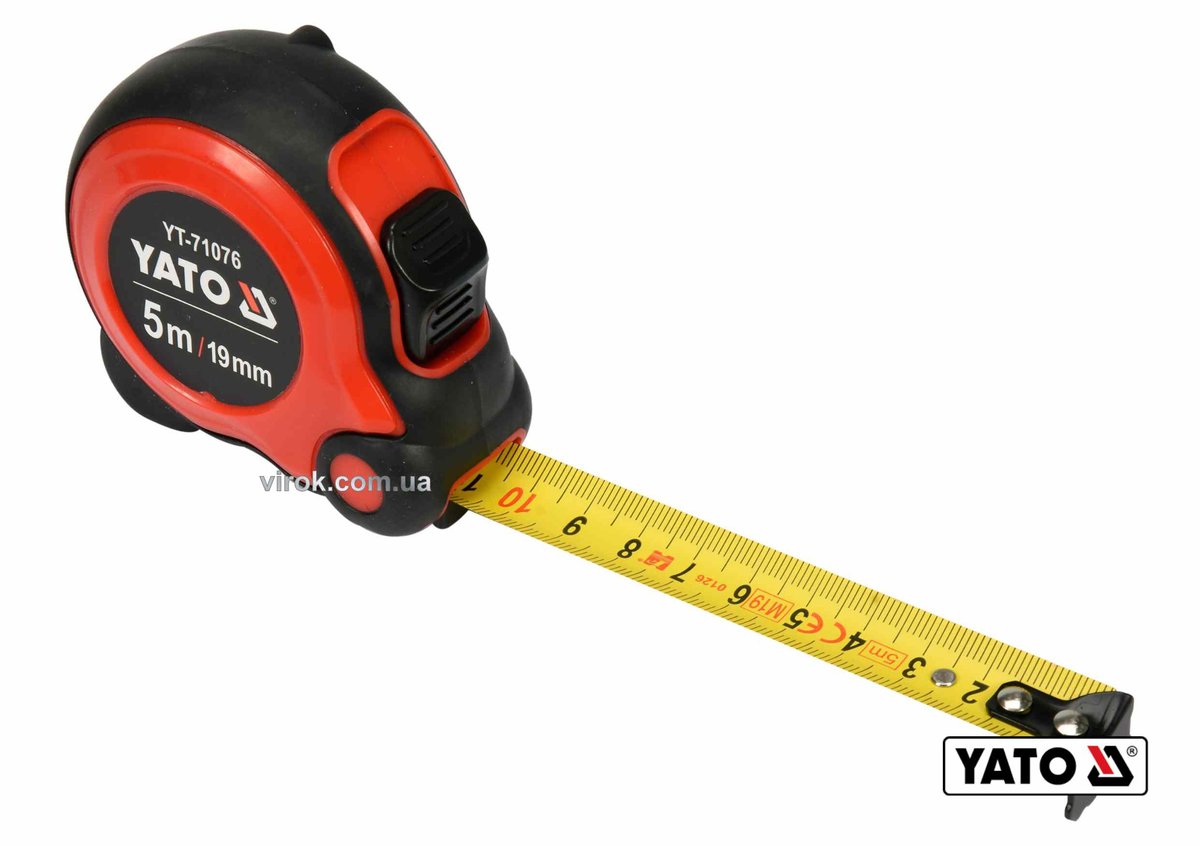 Рулетка YATO : L= 5м x 19мм,з сталевою стрічкою, нейлоновим покриттям, подвійним блокуванням [12/96]