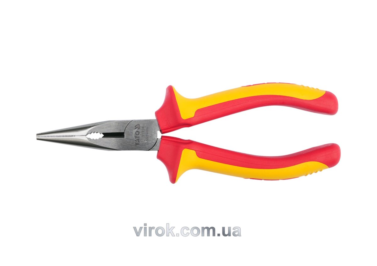 Щипці електромонтажні подовжені півкруглі прямі YATO : L= 160 мм з ізоляцією 1000V [6/36]