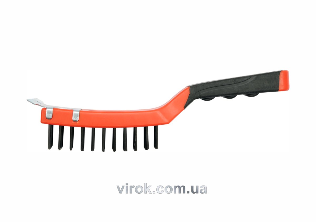 Щітка дротяна сталева з носиком YATO : 4- рядна, L= 200 мм з пластмасовою ручкою [12/72]