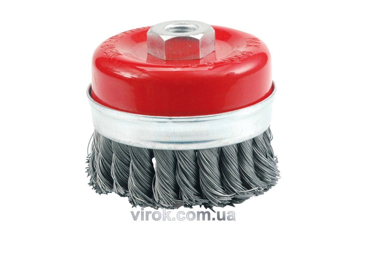 Опис товару ‐ Щітка - крацовка VOREL чашкоподібна, з гайкою М14, Ø-65мм підсилені [12/36]