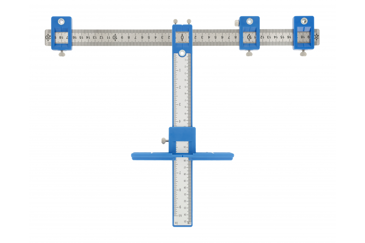 У верхній частині інструменту розташована рухома сталева планка, на якій закріплено три пересувні маркери, що служать для точного визначення точок свердління.