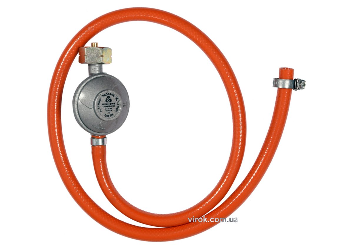 Опис товару ‐ Шланг з редуктором газовий VOREL до побутових газових балонів; l= 1 м [16/576]
