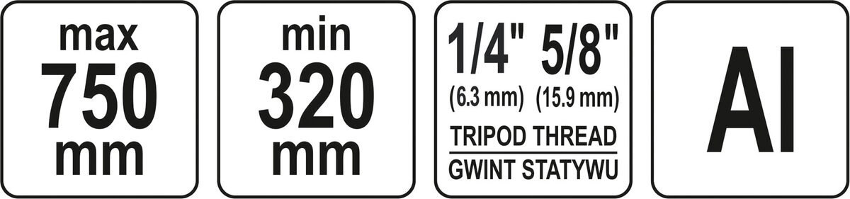 Штатив тринога YATO телескоп (3 секціі) . кріплення 5/8", з штангою 14 cм. H= 32-75 cм. алюмінієвий