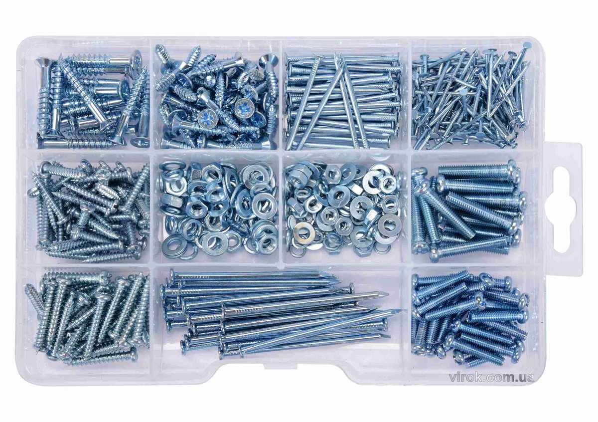Шурупи, цвяхи, шайби і гайки VOREL, набір 580 шт. [6/24]