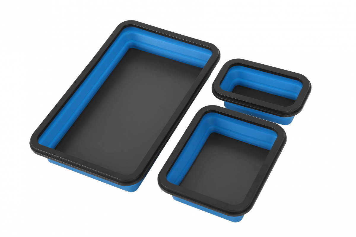Набір з 3 складних мисок - це практичний аксесуар, який дозволяє легко зберігати гвинти, болти, гайки та інші дрібні деталі та предмети під час роботи.