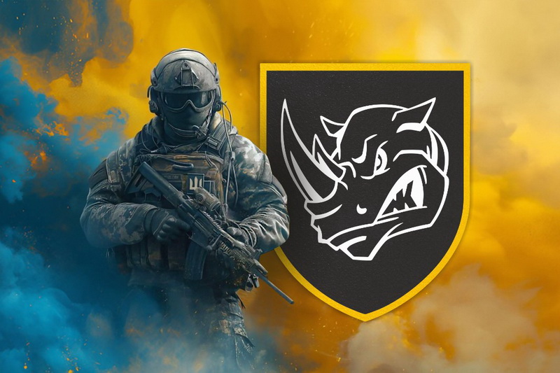Опис товару ‐ Солдат,носоріг на фоні жовто-блакитного диму