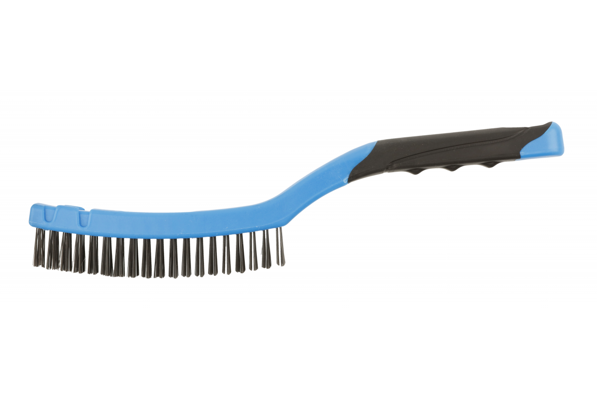 Щітка виготовлена з твердого сталевого дроту, міцно закріпленого в пластиковому корпусі.