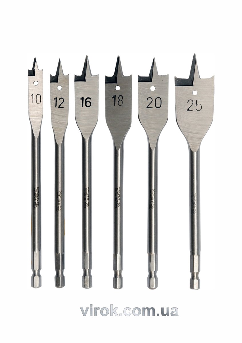 Свердла перові по дереву YATO: 6-гранний хвостик HEX-1/4", Ø=10-25 мм, L=152 мм. (Набір/6 Шт.) [25]
