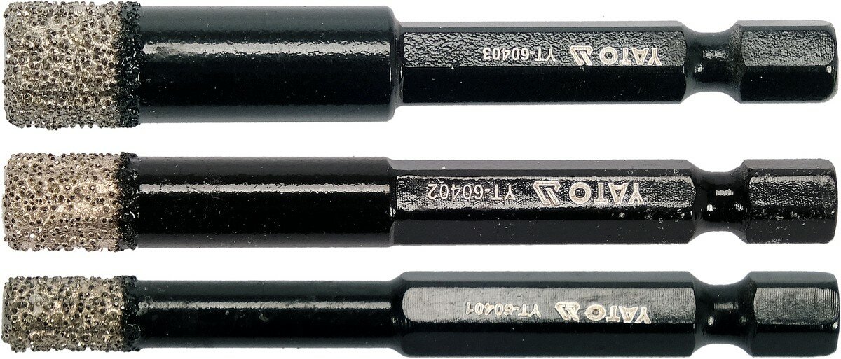 Свердла з алмазним пругом YATO, 3 шт. Ø= 6-8-10 мм, l= 65/10 мм, з 6-гран. шпинделем- 1/4" [20/80]