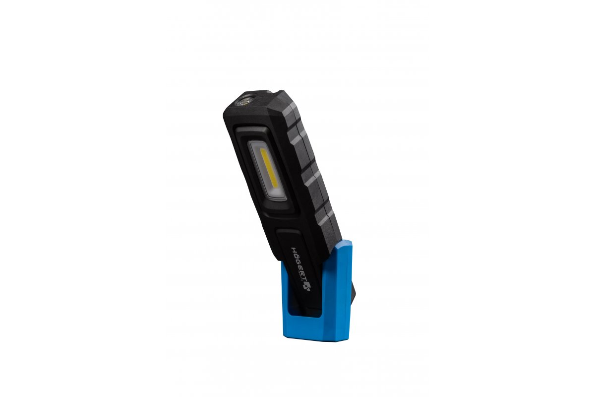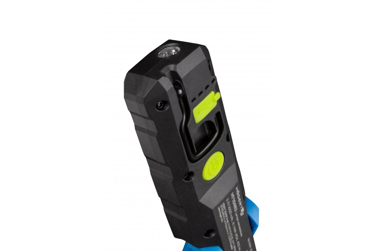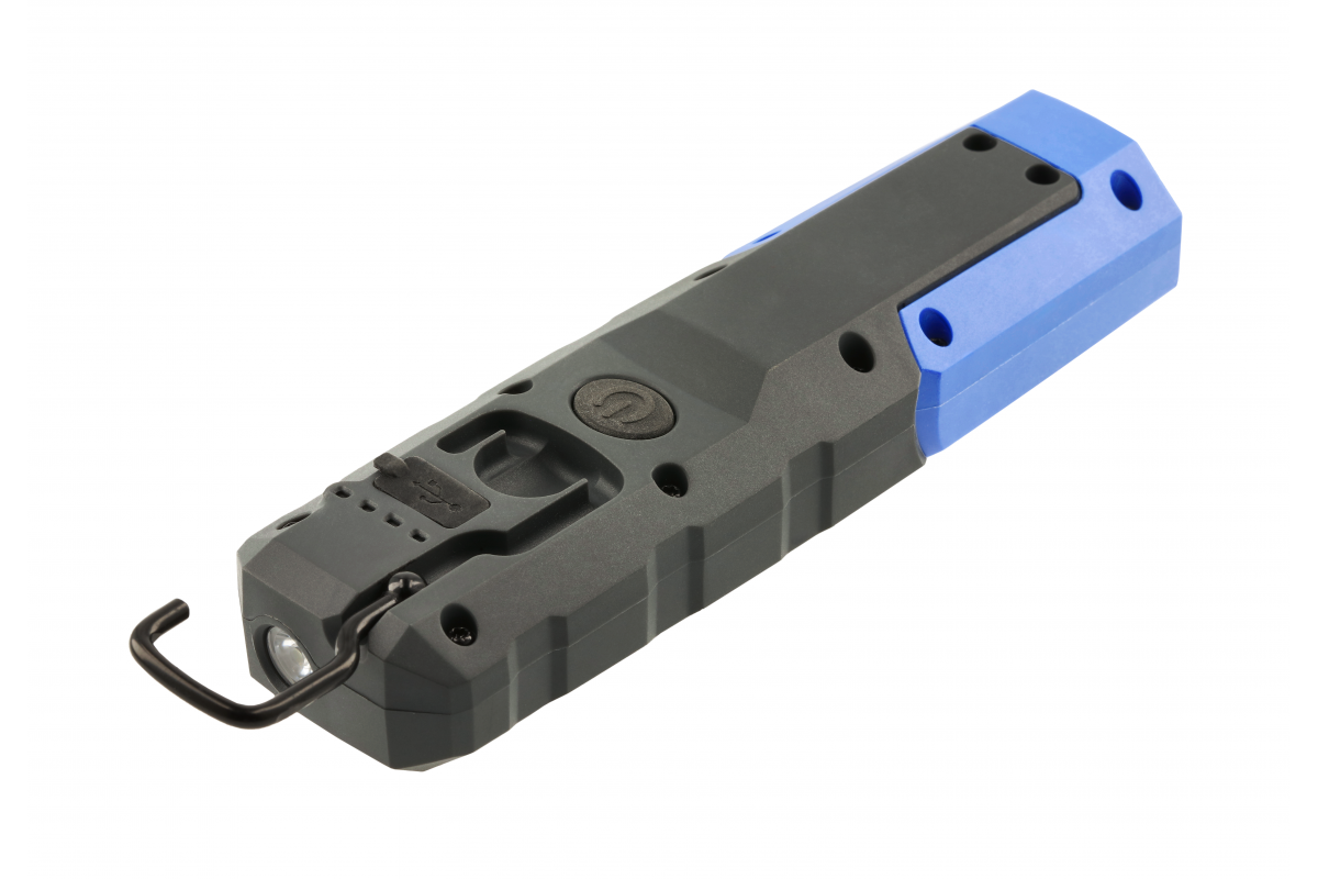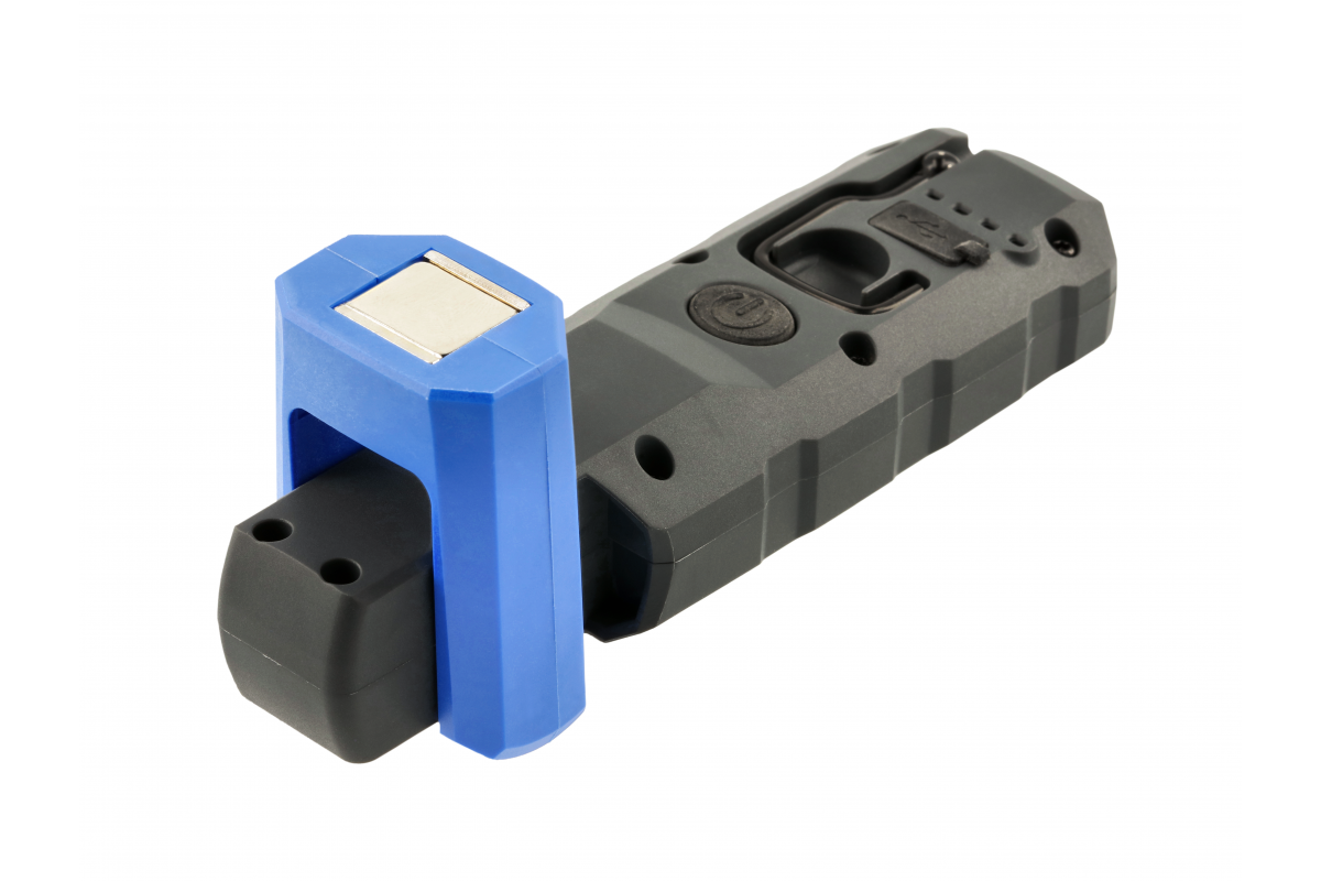 Сильний магніт і складаний гачок дають змогу закріпити лампу і звільнити руки для роботи.