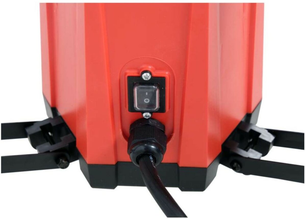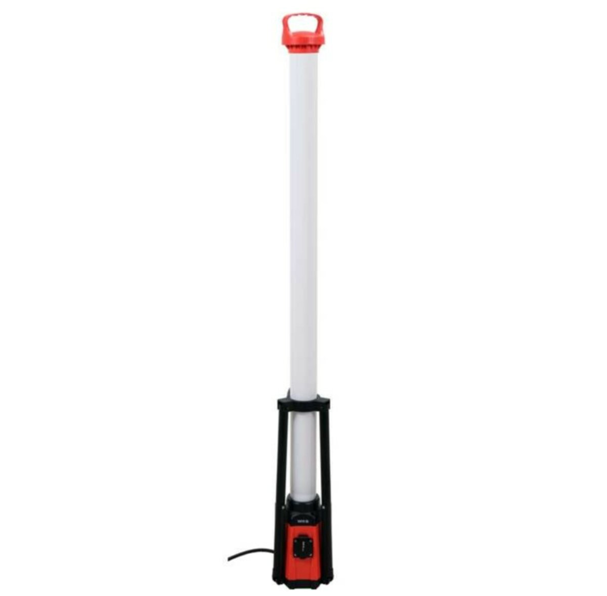 Лампа зі складним штативом призначена для використання всередині і на вулиці. Режим роботи 7500 лм забезпечує дуже хороше освітлення робочого простору в усіх напрямках. Додатковою перевагою є вбудована електрична розетка, до якої можна підключати обладнання максимальною потужністю 3000 Вт.