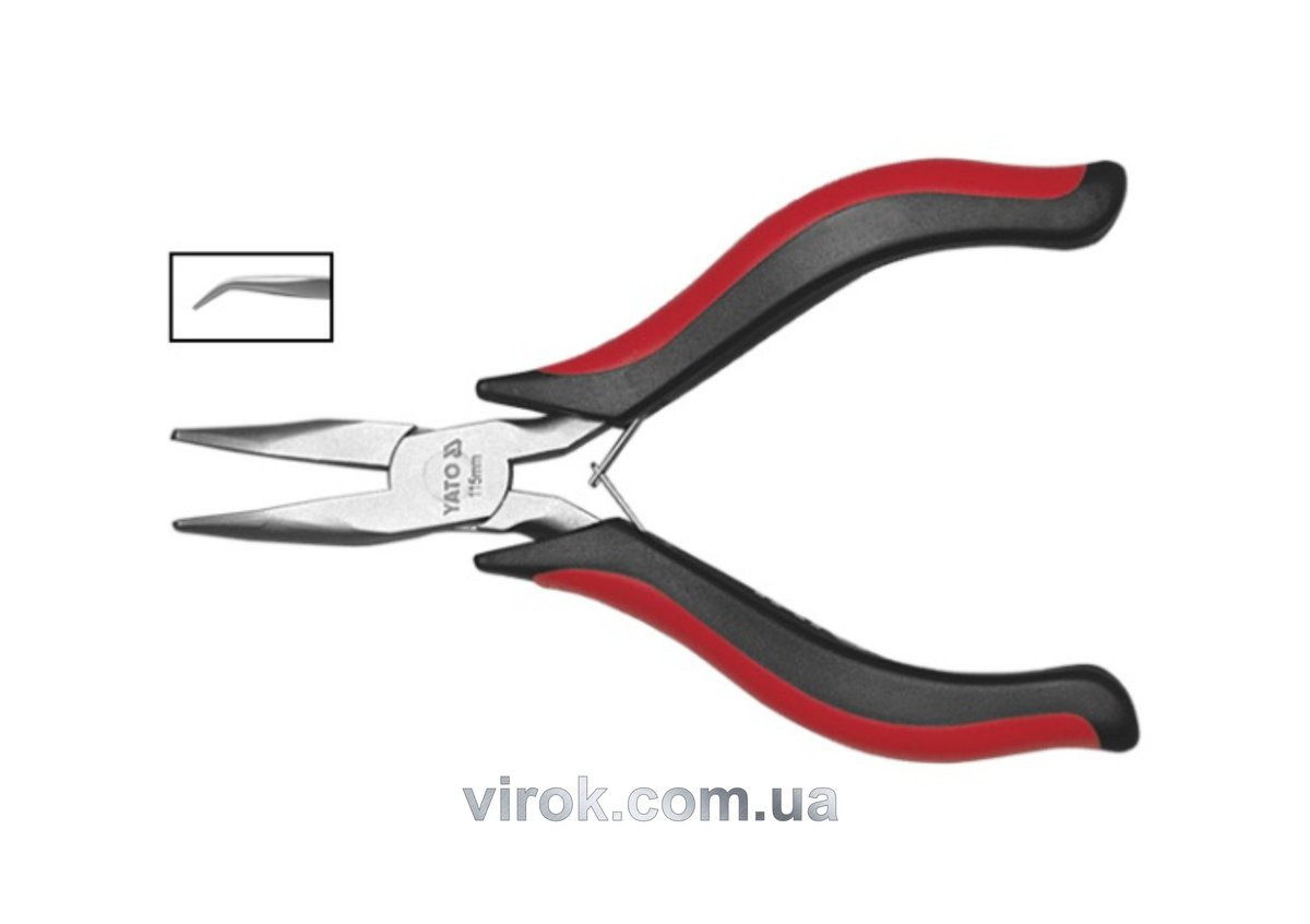 Тонкогубці-міні загнуті нікельовані YATO : L= 115 мм [6/120]