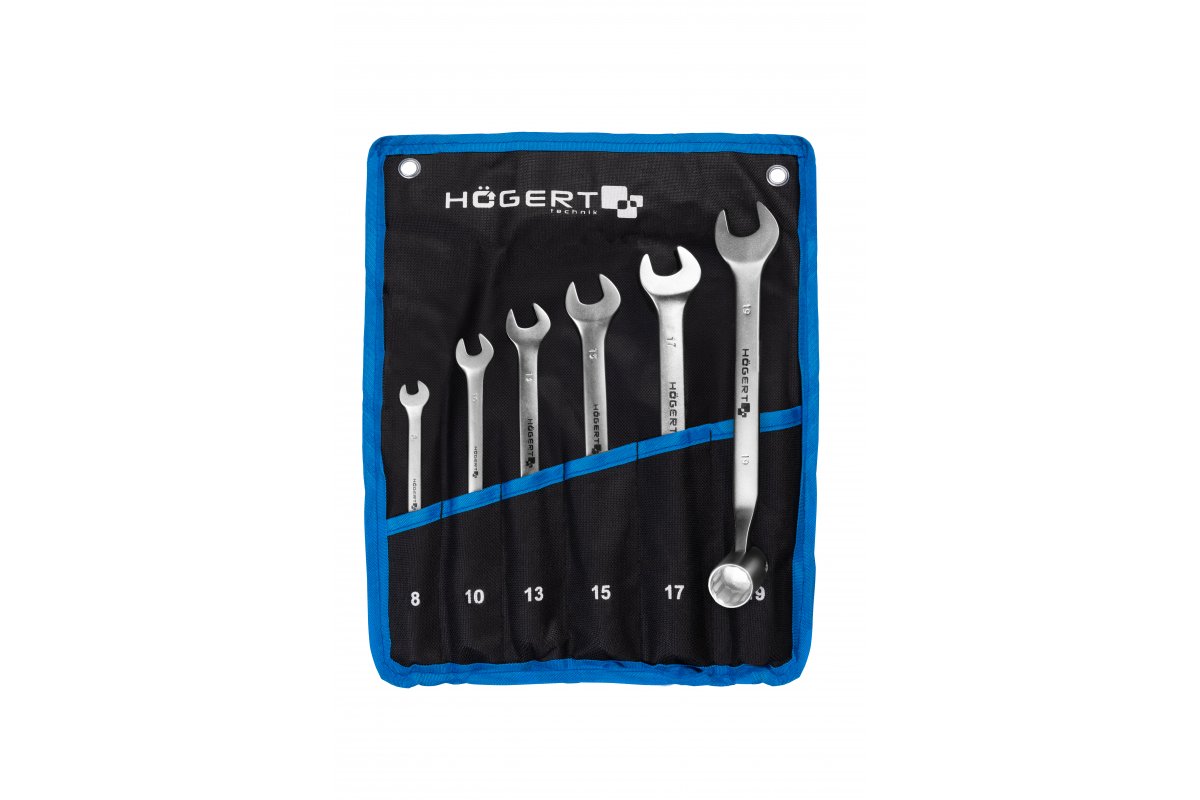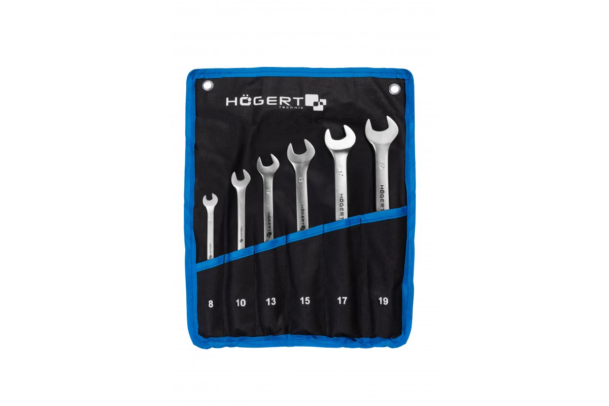 До набору входять гайкові ключі з відкритим кінцем. Гайкові ключі виготовлені з високоякісної, твердої та міцної хром-ванадієвої сталі, що робить їх дуже стійкими до корозії та утворення іржі. Гайкові ключі стійкі до пошкоджень і зневоднення, що дає змогу використовувати їх навіть у важкодоступних місцях. У комплект входить пластикова ручка для підвішування гайкових ключів для зручного зберігання і швидкого доступу до необхідного обладнання.