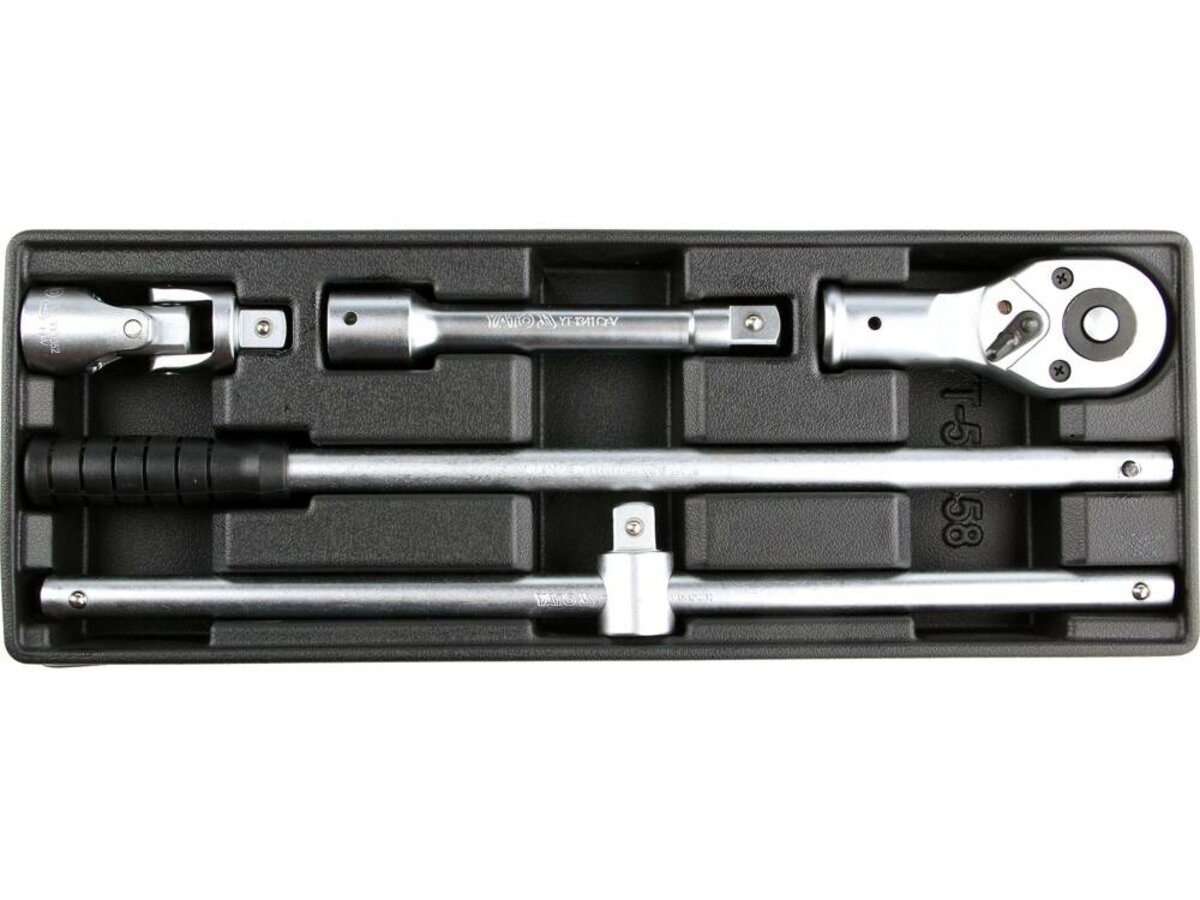 Вклад до інструментальної шафи містить 4-елементний набір інструментів 3/4 ". - вставка - тріскачка 3/4" YT -1360 довжиною 500 мм - подовжувач 3/4 "YT -1341 довжиною 200 мм - з'єднання 3/4" "YT -1352 - 3/4 "YT-1350 ручка довжиною 500 мм
