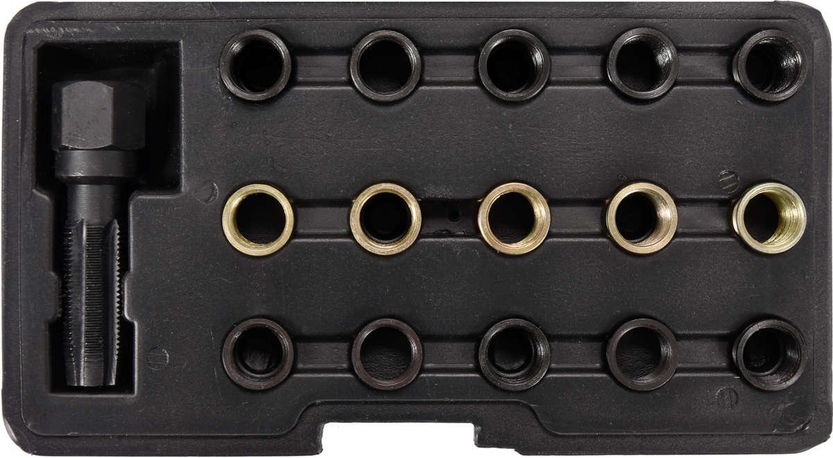 Засоби для ремонту "свічок" запалу YATO: мітчик під головку М16х 1,25 і 15 напрям. втулок, комп. 16е