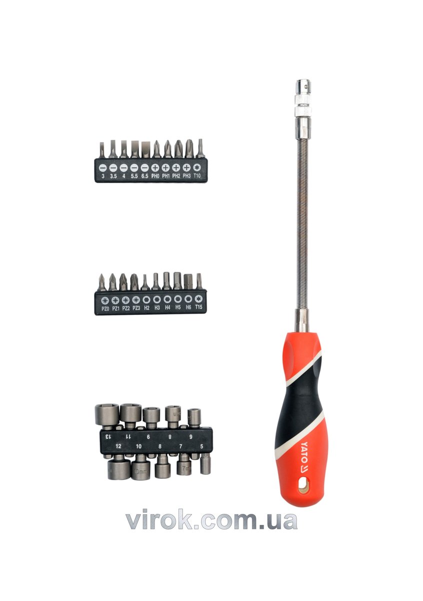 Викрутка - тримач YATO з гнучким стержнем з насадками, HEX 1/4". Hабір 31 Од. [6/24]