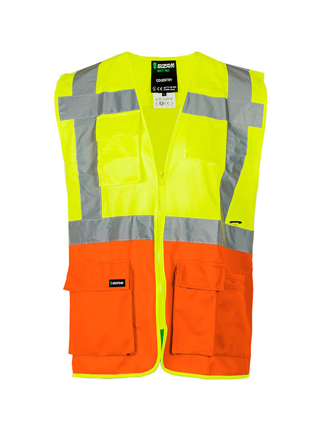 Легкий, универсальный жилет желто-оранжевого цвета, со светоотражающими полосами (степень отражения 2-го класса)